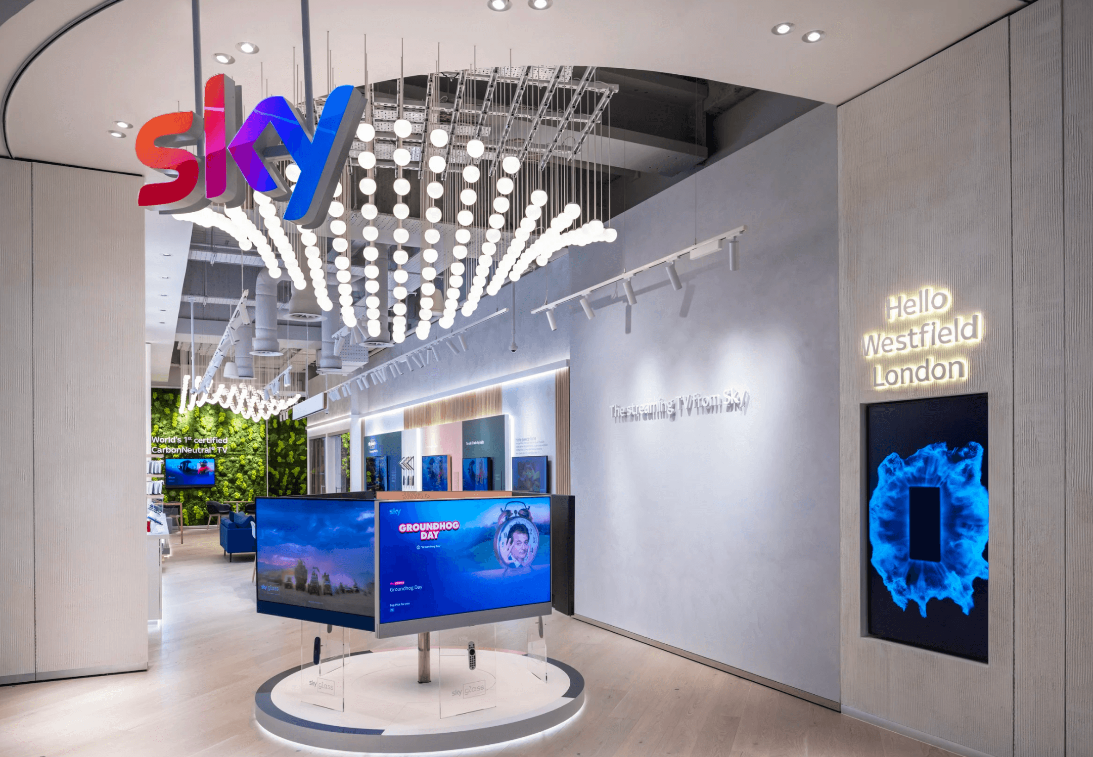 We’re delighted to say that the flagship store concept we developed for Sky to launch Sky Glass at Westfield White City has been shortlisted at Retail Week Awards for Best New Store.Since 2021 – Sky has been on a journey of change and shifting their retail strategy was a key part of this. This shift responded directly to a desire from consumers for more meaningful and experiential brand experiences, alongside a wider brand purpose to create a more sustainable business (and future for us all) and a desire to talk to consumers about how they are changing as a business.We wanted to help Sky further leverage their stores to tell and enhance its brand story, by focusing on the rich and immersive in-store customer experience. Every detail in the store design helped create an environment to effectively showcase and launch Sky Glass in a way that elevates it above other brands; from the lighting and visual effects that echo Sky Glass’ advertising campaign ‘Made from magic’ – to the spacious and clean store design that displays the TV in a premium, gallery-like setting. The elevated store allows customers to have an enhanced understanding of the world of Sky, allowing shoppers to experience its products, services, and content in more intuitive ways.The Sky Westfield London store was achieved through collaborative design and build process with key members of the Sky operations and retail teams internally; with design by The One Off Ltd; Project Management by Fulkers; and development and build by Quantum4 and ISG.With over a decade’s worth of experience working together and producing store concepts, designs, and displays, this latest iteration of our collaborative design process has created long-lasting impact, both for retailers and consumers. The proof is in the pudding when it comes to the measurable success of the store: – The store has been amazing for Sky’s general brand awareness and recognition, being situated in a prime retail position in Westfield London’s centre.– Sky have seen a 50% increase in footfall, as well as the recorded 46% of customers who purchased Sky Glass in store.– There has been a strong upward trend in terms of Sky Glass TV sales throughout the store, by up to 20%.– Sky have noted a high level of conversion from in-store demos with the experienced staff members, proving to be very popular with customers
