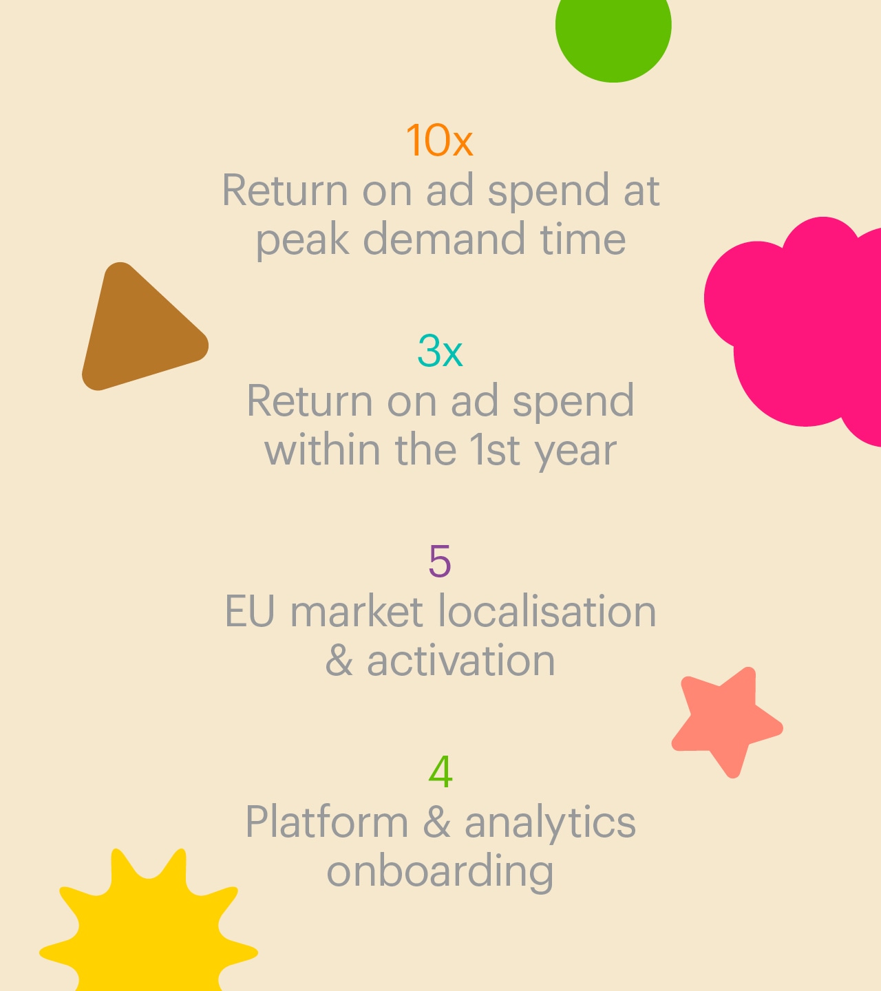 The transformation delivered exceptional commercial impact for Hape, generating a 10x return on ad spend during peak demand periods and achieving a sustained 3x return within the first year. Our strategy successfully scaled direct-to-consumer activation across five European markets, supported by the onboarding of four key platforms and a comprehensive analytics infrastructure.