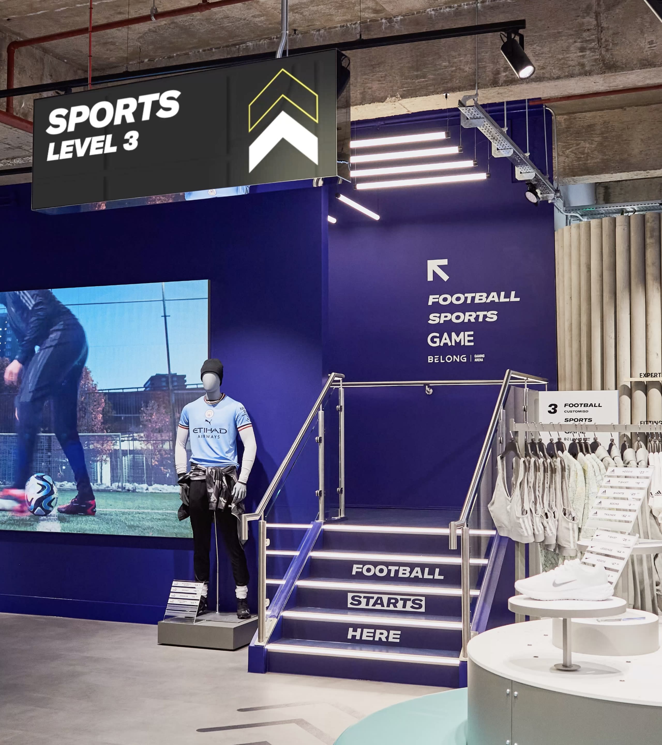 By employing clear wayfinding techniques, we ensured that customers could effortlessly find their way through three levels of sporting goods, guaranteeing a seamless shopping experience.