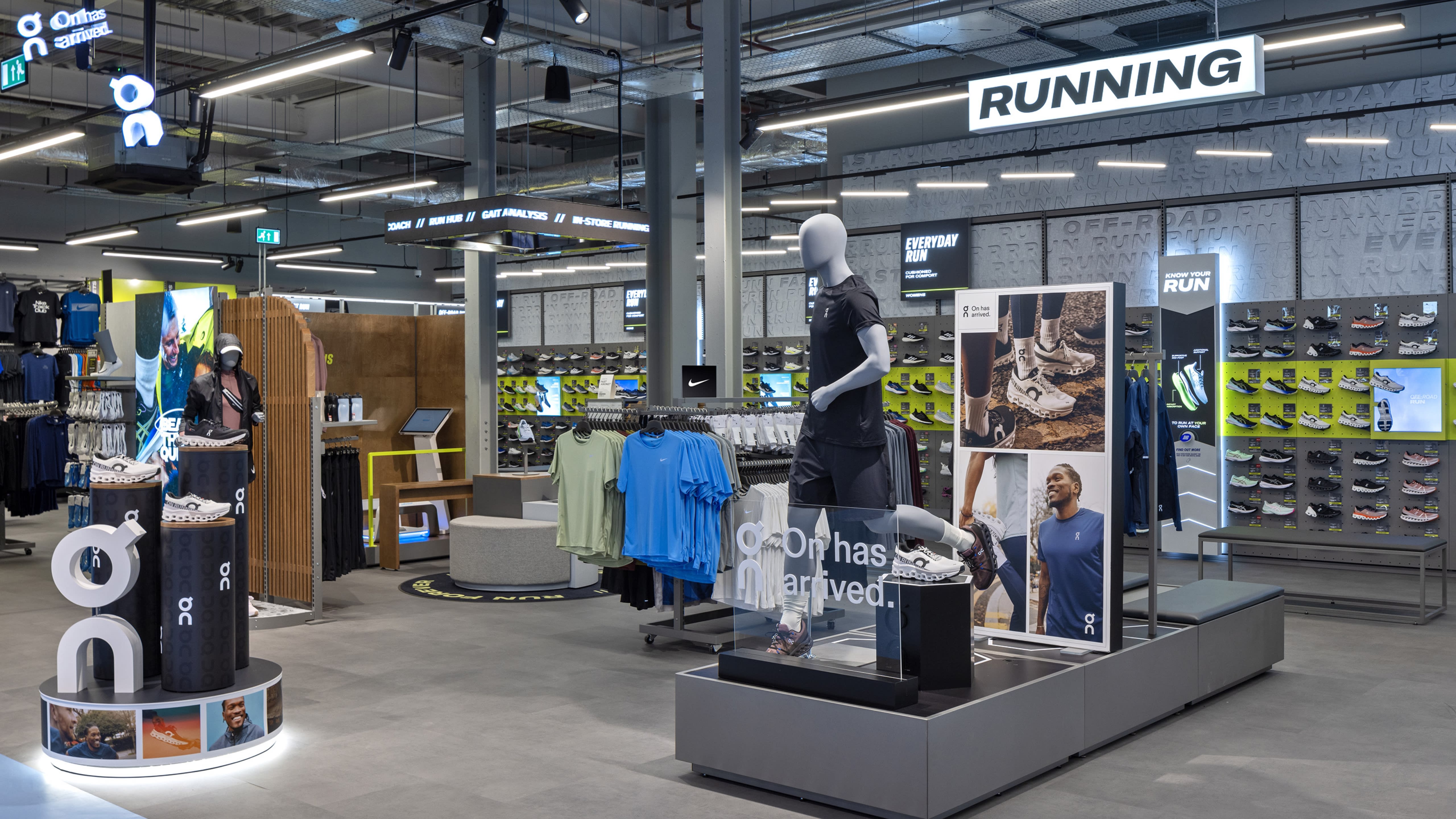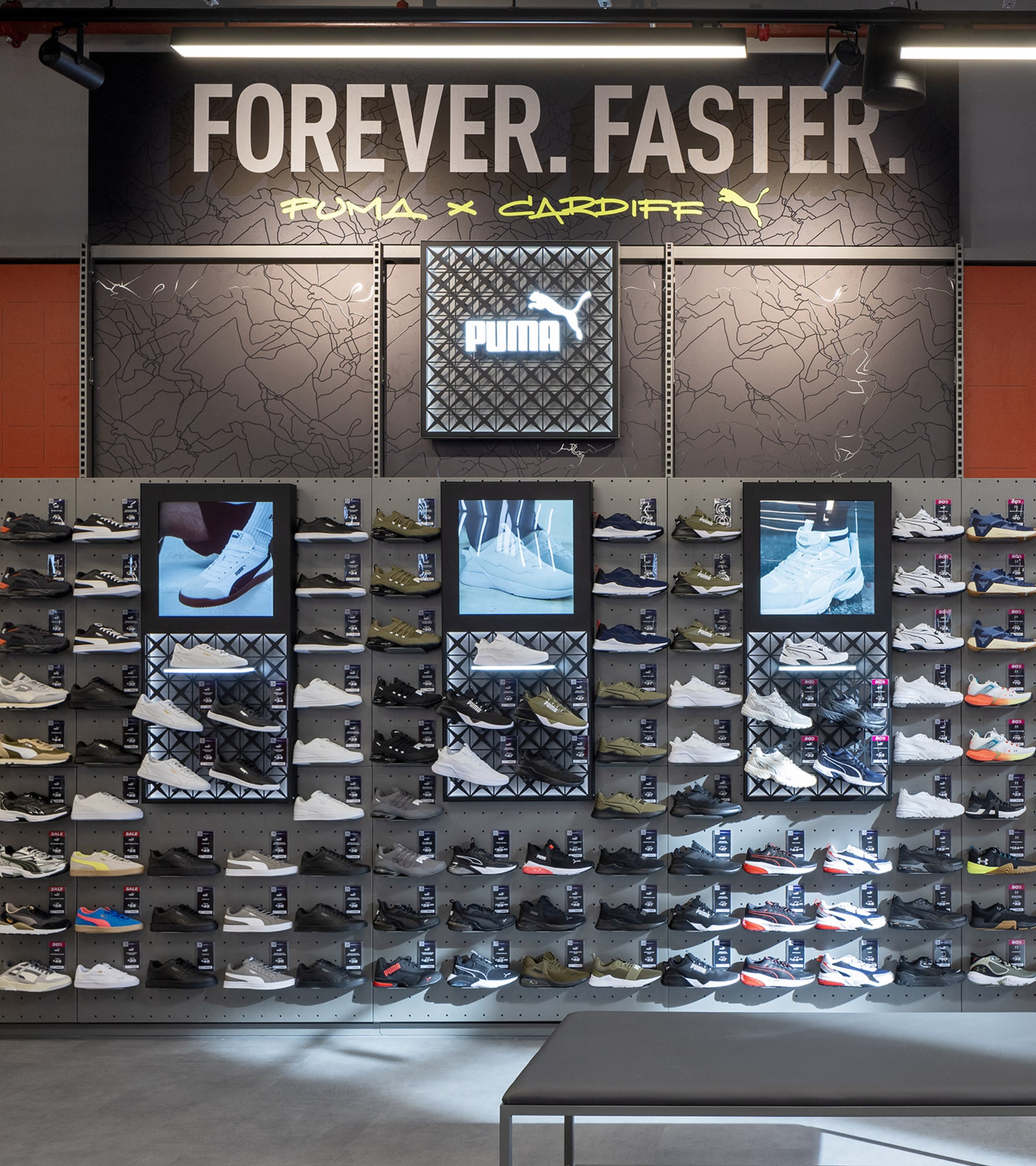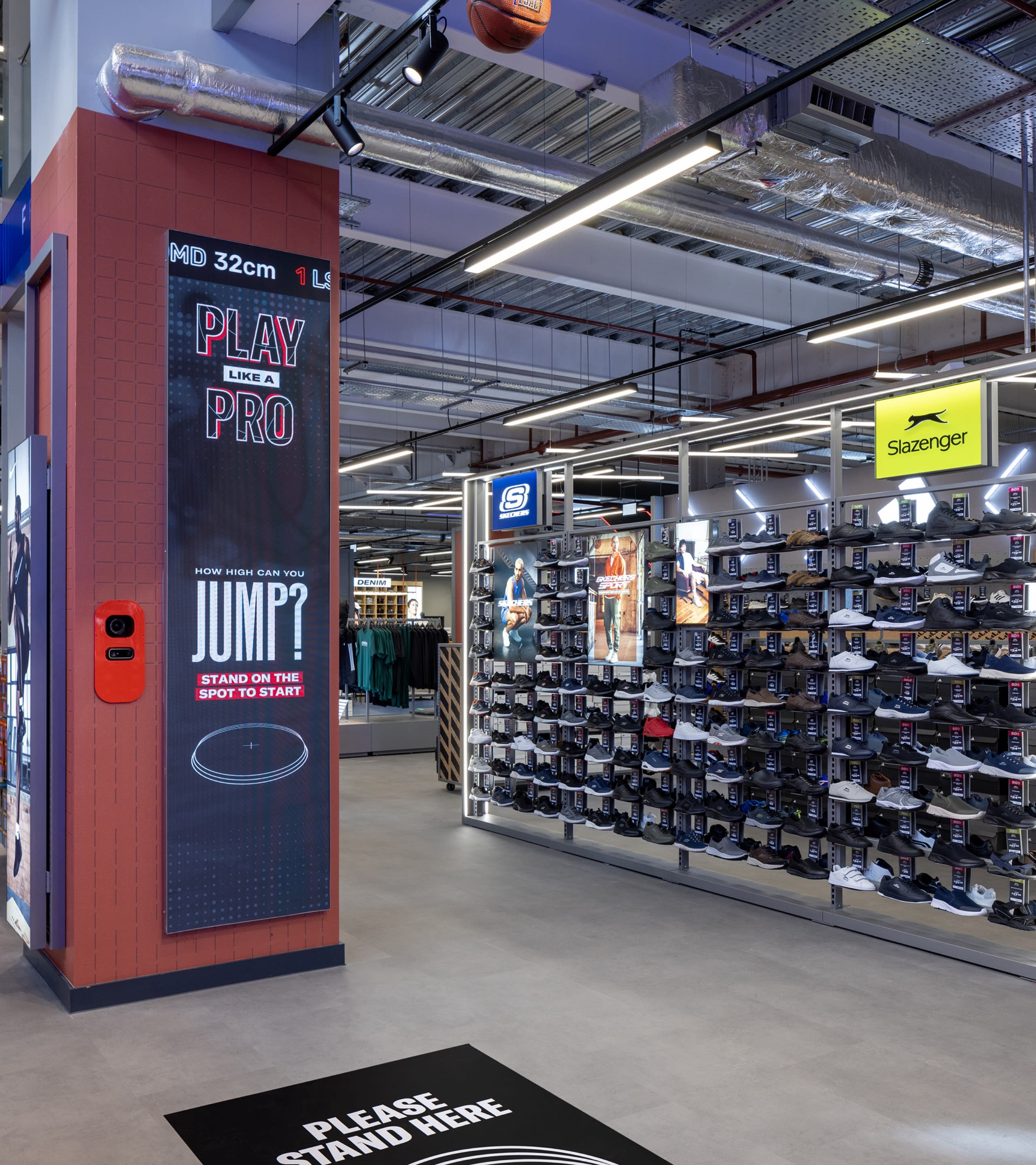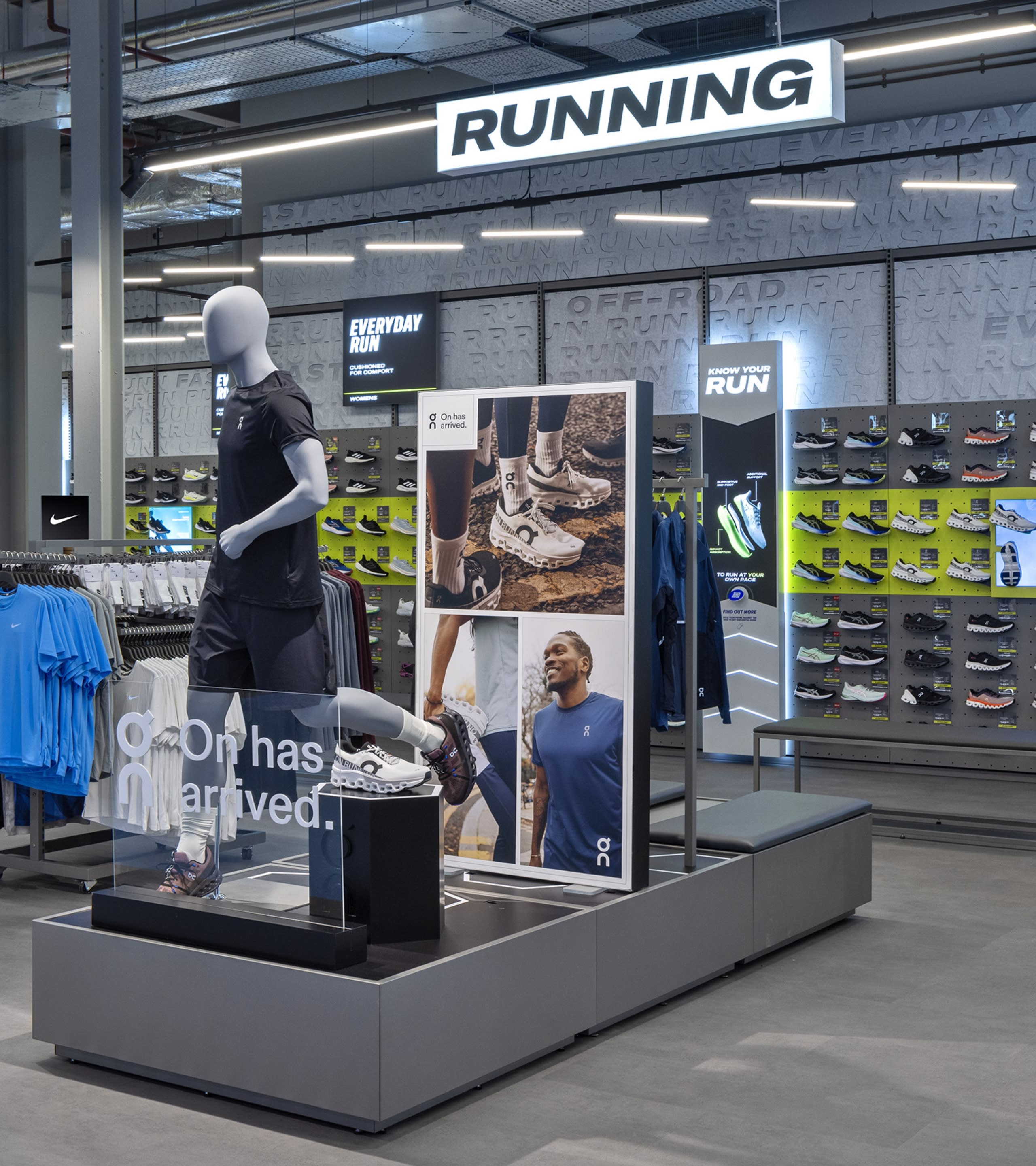 An impressive destination in the heart of Cardiff offering a ‘flagship feel’ but with a reduced capex to deliver; an impressive 15m high entrance atrium with digital wrap to help navigate customers through the store, largescale bespoke artwork through local artist collaborations celebrating sport, Cardiff and the Nike brand, elevated in-store brand destinations for Nike, Under Armour and Puma, immersive and interactive experience destinations such as the ‘Hang Tough’ challenge and rugby ‘Pass Zone’.