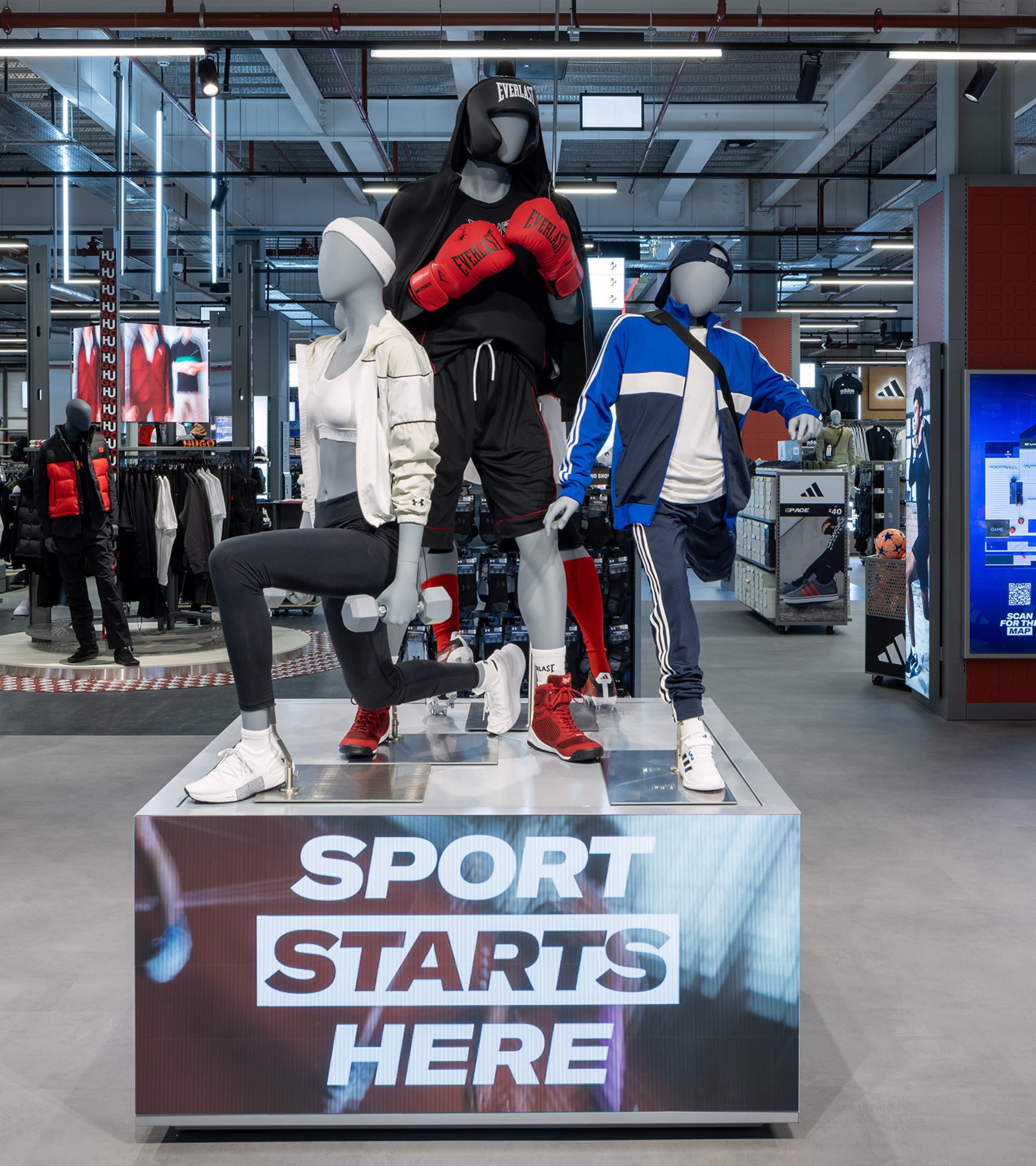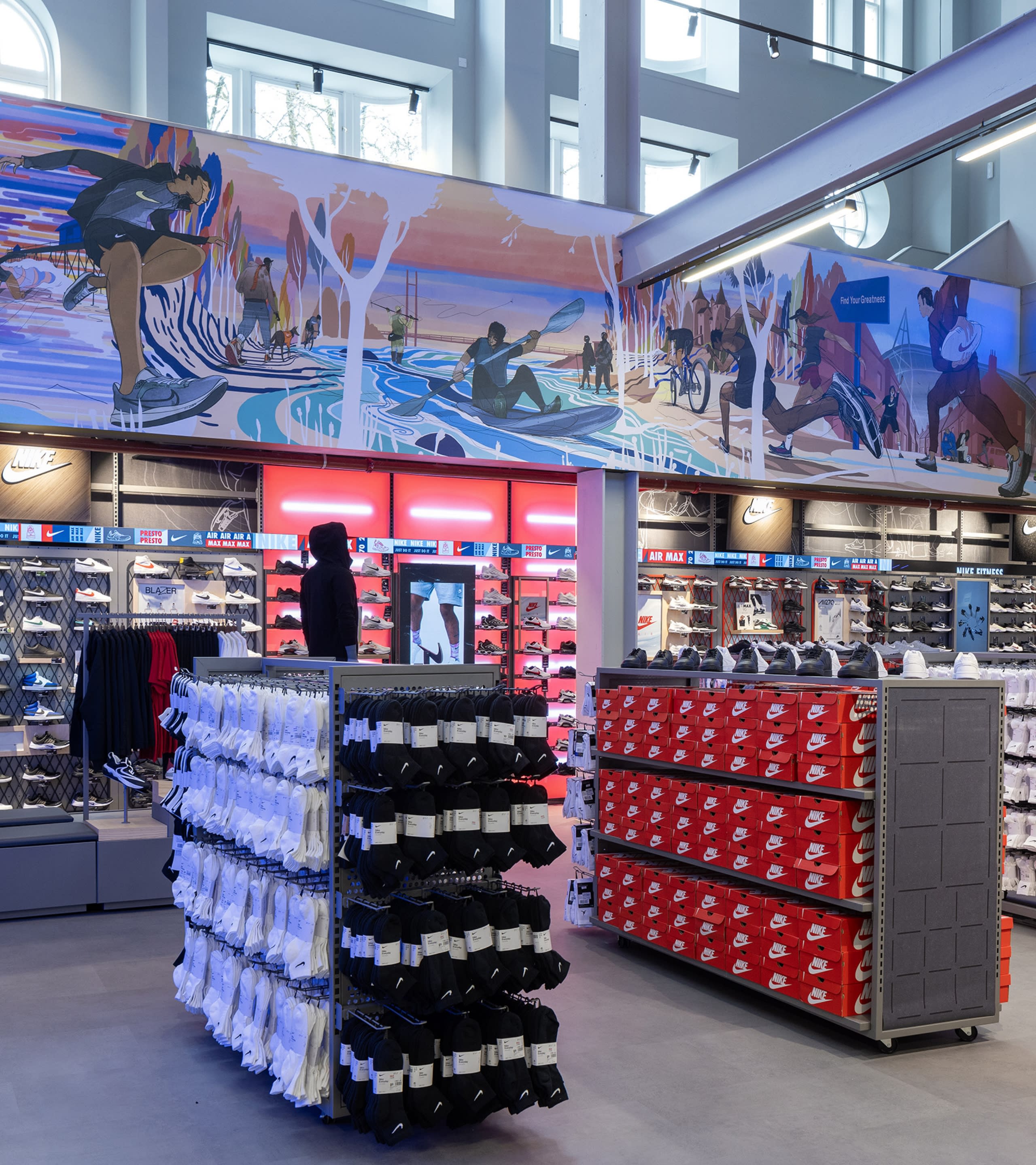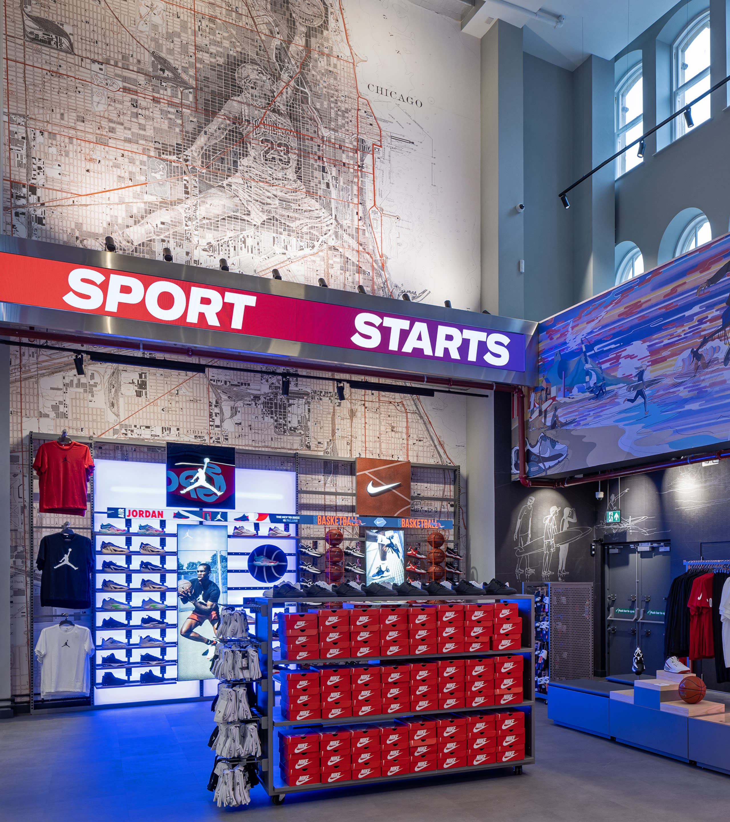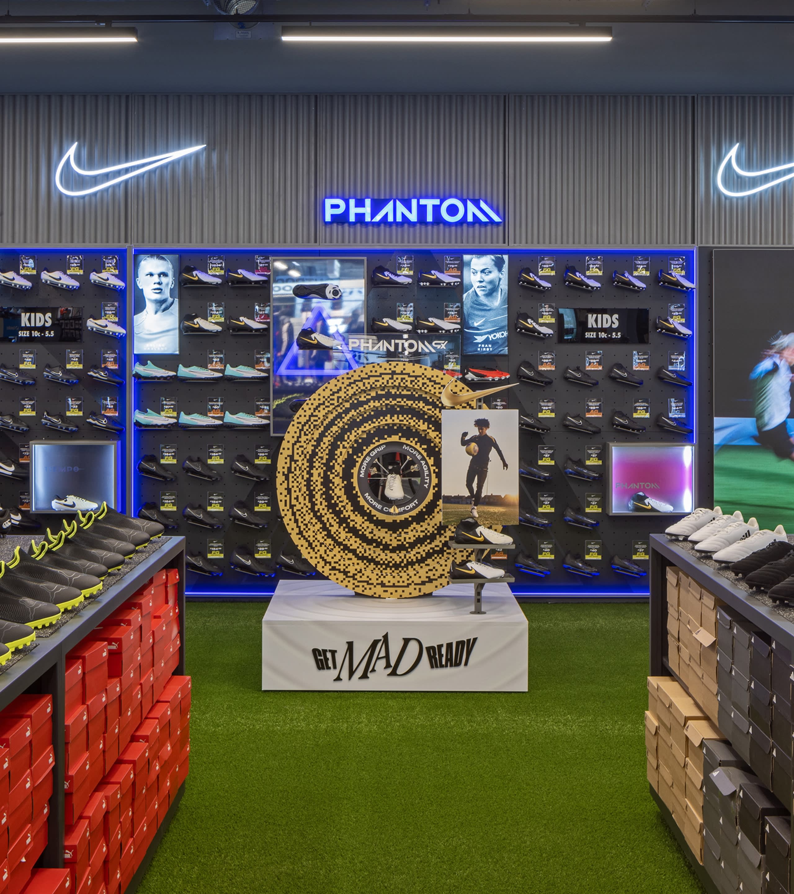 An impressive destination in the heart of Cardiff offering a ‘flagship feel’ but with a reduced capex to deliver; an impressive 15m high entrance atrium with digital wrap to help navigate customers through the store, largescale bespoke artwork through local artist collaborations celebrating sport, Cardiff and the Nike brand, elevated in-store brand destinations for Nike, Under Armour and Puma, immersive and interactive experience destinations such as the ‘Hang Tough’ challenge and rugby ‘Pass Zone’.