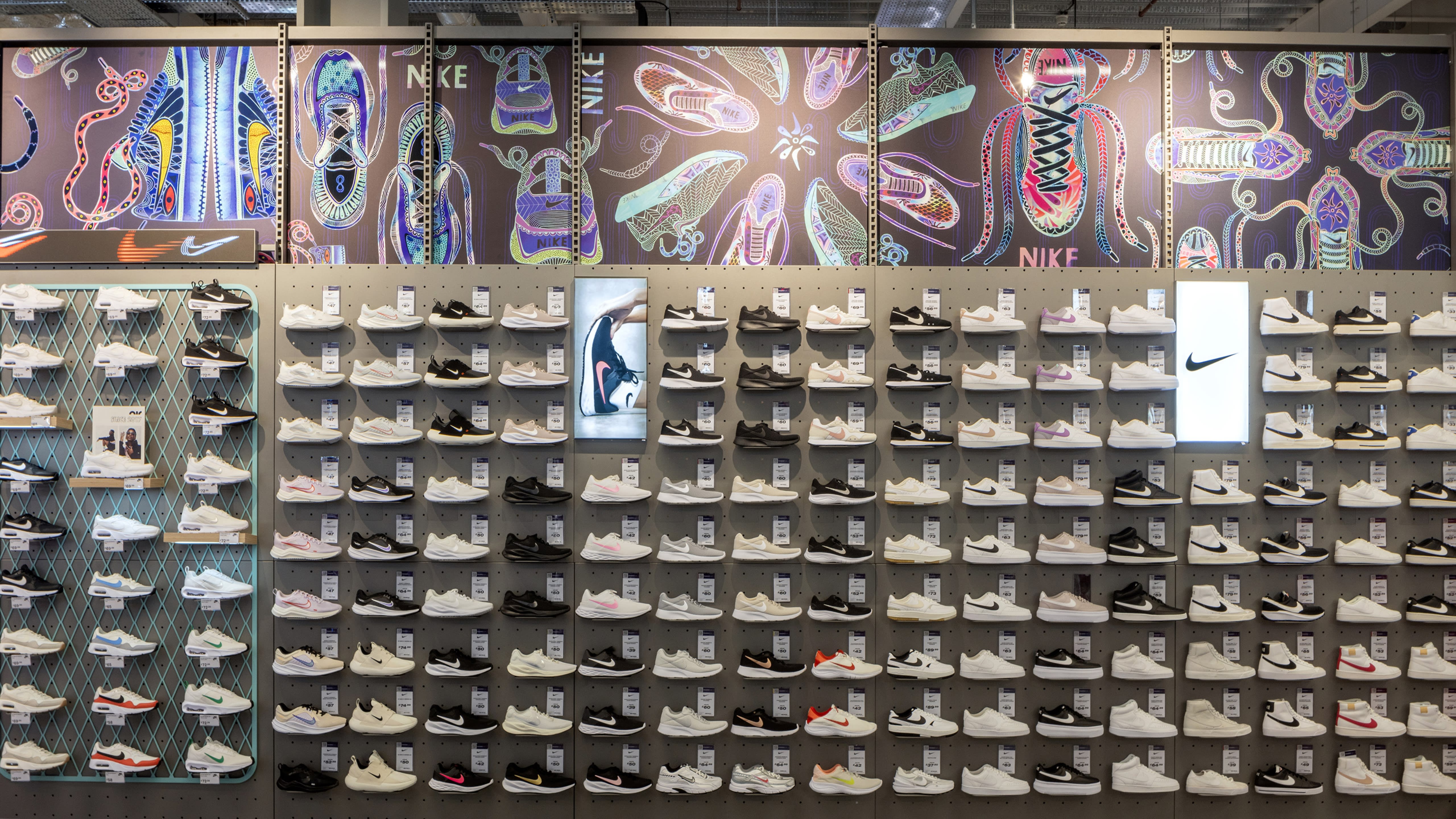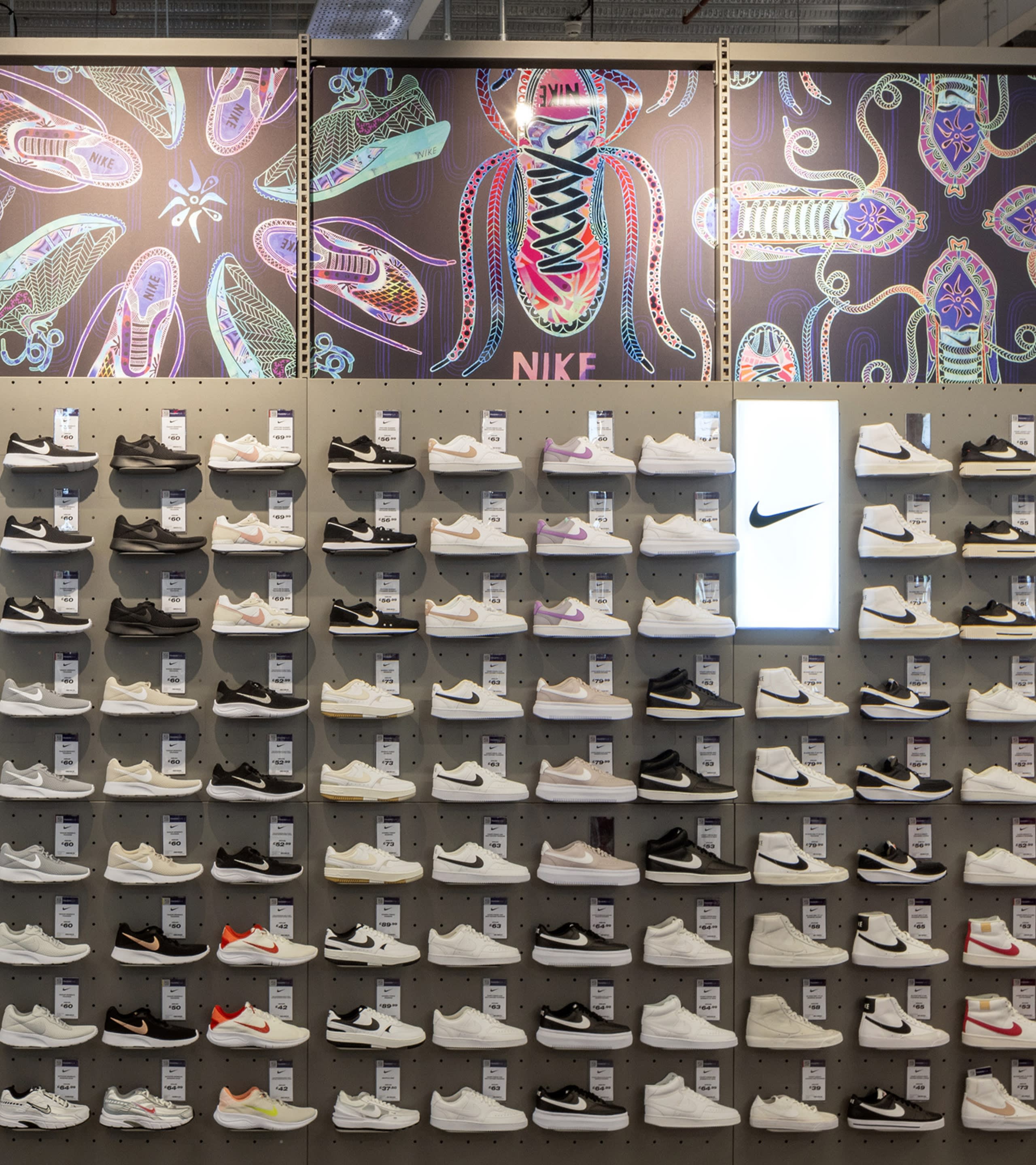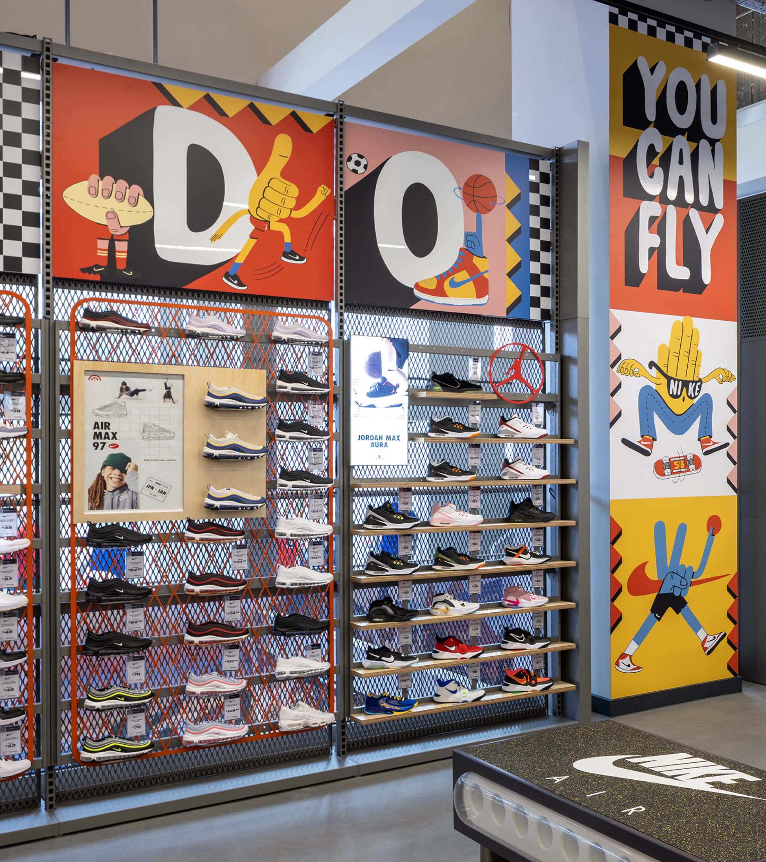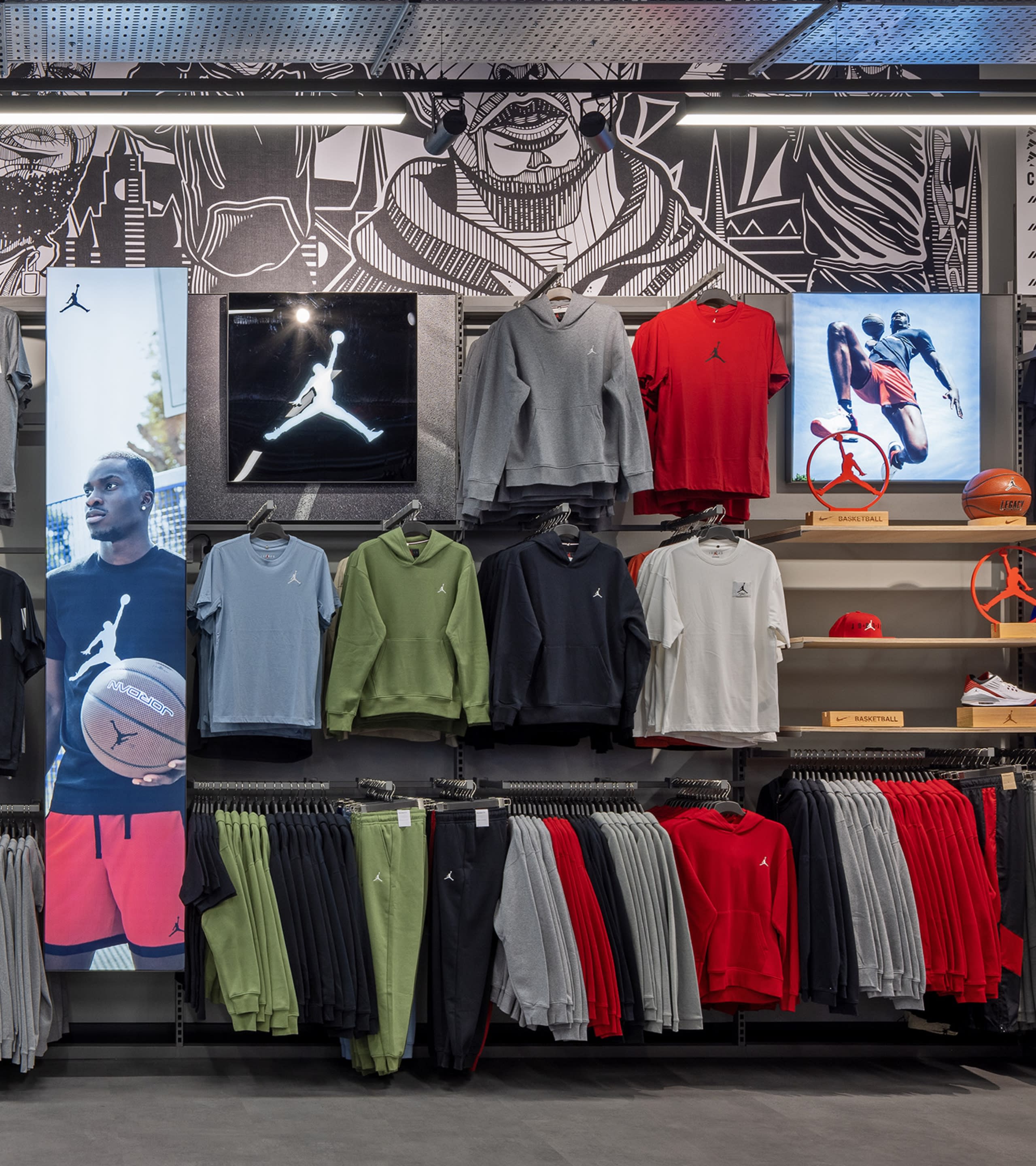 An impressive destination in the heart of Cardiff offering a ‘flagship feel’ but with a reduced capex to deliver; an impressive 15m high entrance atrium with digital wrap to help navigate customers through the store, largescale bespoke artwork through local artist collaborations celebrating sport, Cardiff and the Nike brand, elevated in-store brand destinations for Nike, Under Armour and Puma, immersive and interactive experience destinations such as the ‘Hang Tough’ challenge and rugby ‘Pass Zone’.