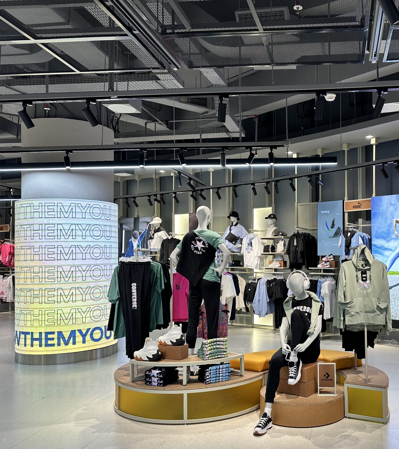 GMG approached us to re-design one of their biggest retail brands, Sun & Sand Sports. The existing store environment lacked impact and had a fragmented customer journey. With an extensive range of sports footwear, apparel, and equipment available we really wanted to elevate the in-store experience to drive not only existing sports-focussed customers, but also appeal to a wider audience seeking sports lifestyle products.