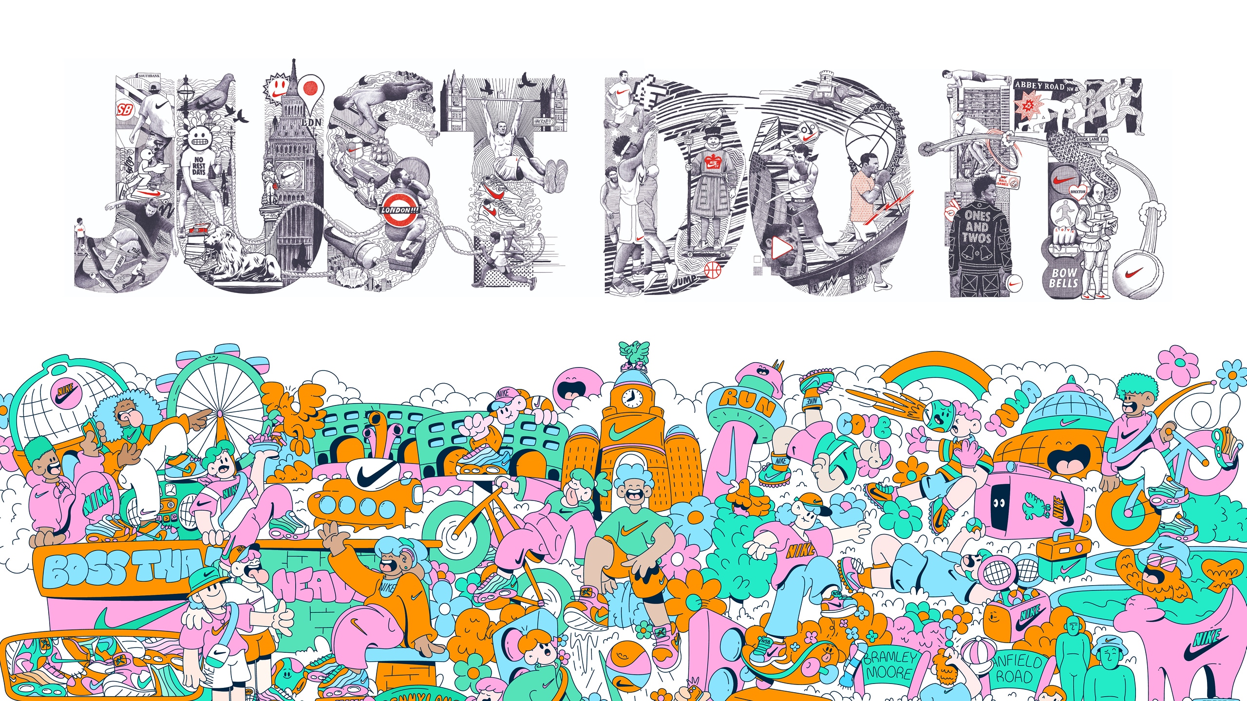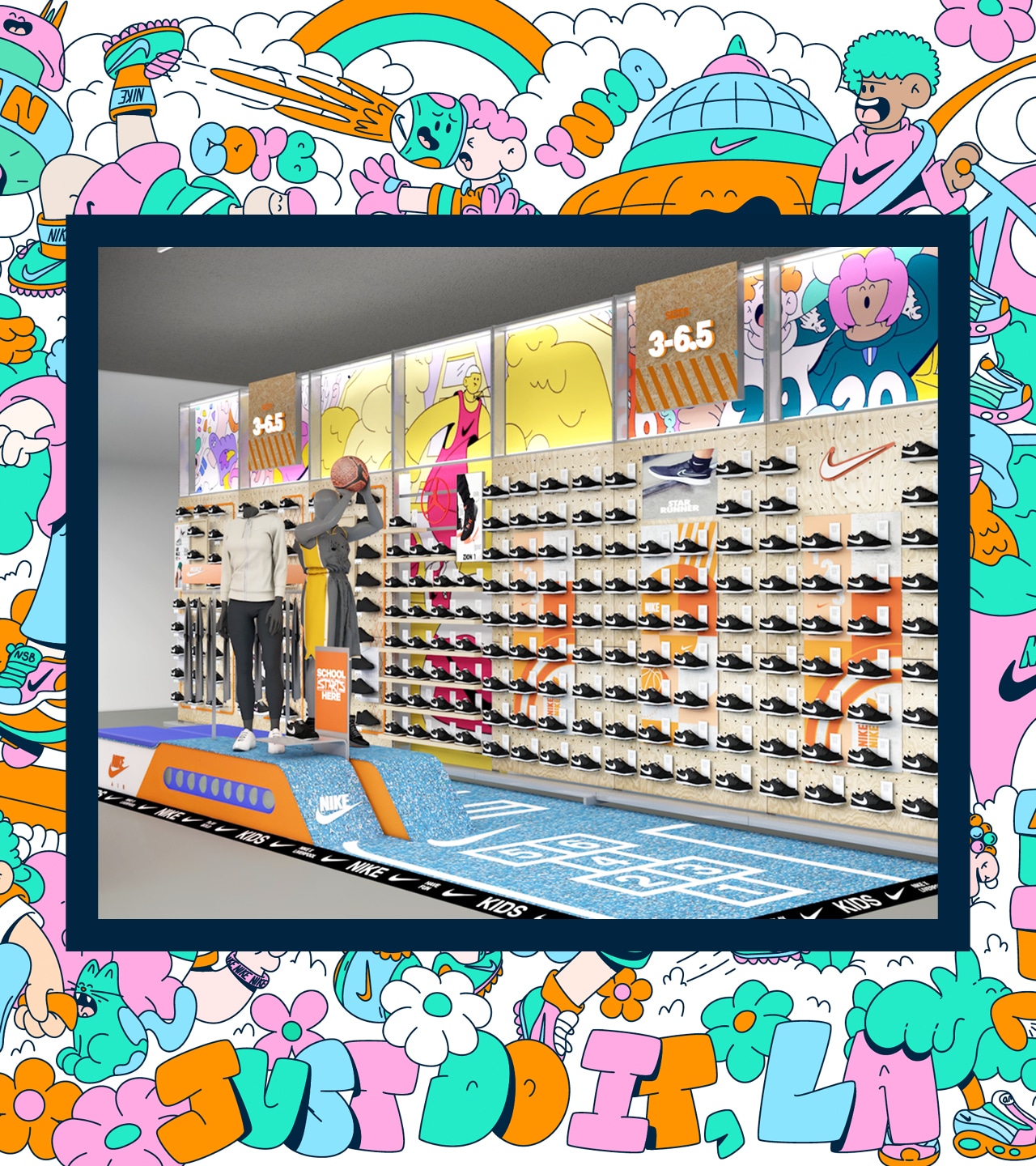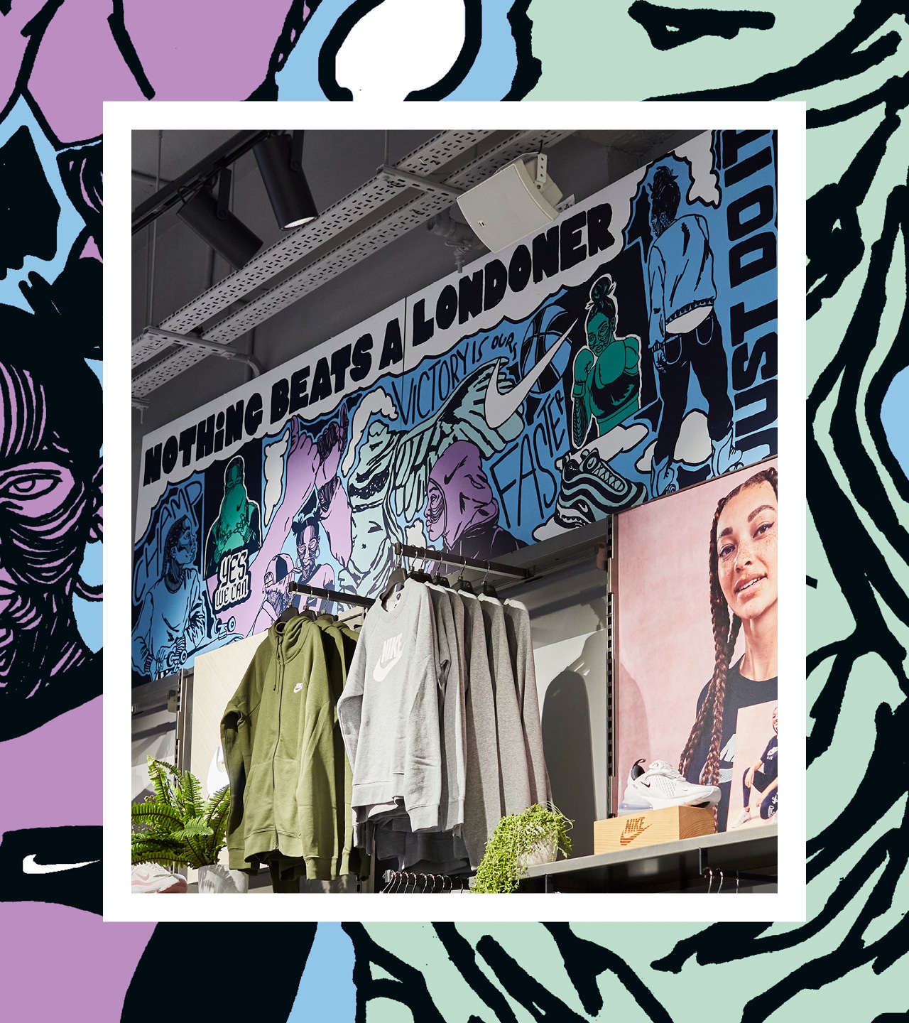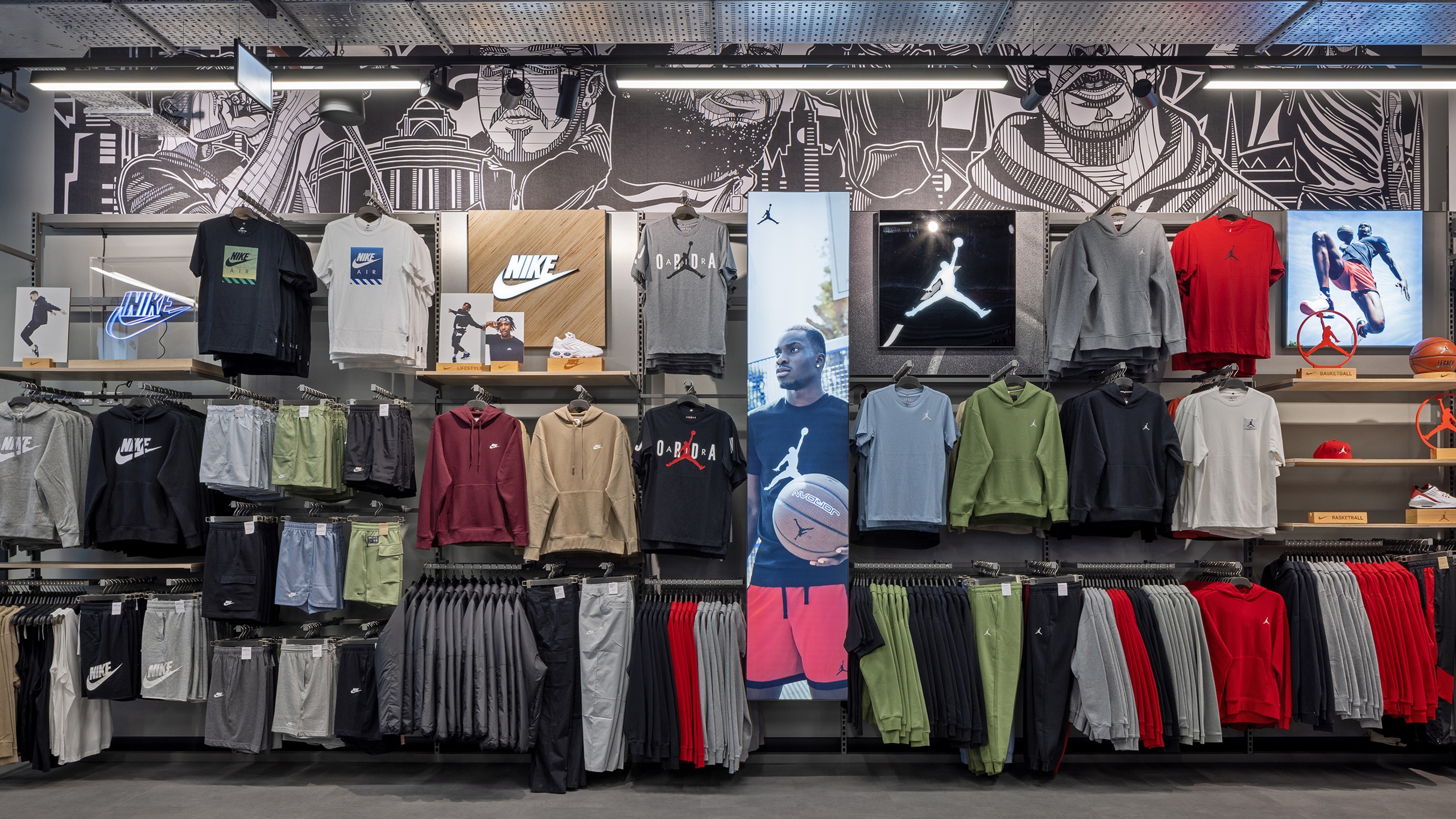 The outcome is transformative. These commissioned works turn Nike retail environments into living cultural canvases. They are authentic celebrations of their respective cities - layered with local references, sporting heritage and shared memory - while remaining unmistakably Nike. Executed beautifully and at scale, the installations move beyond visual enhancement to become cultural landmarks within the space.